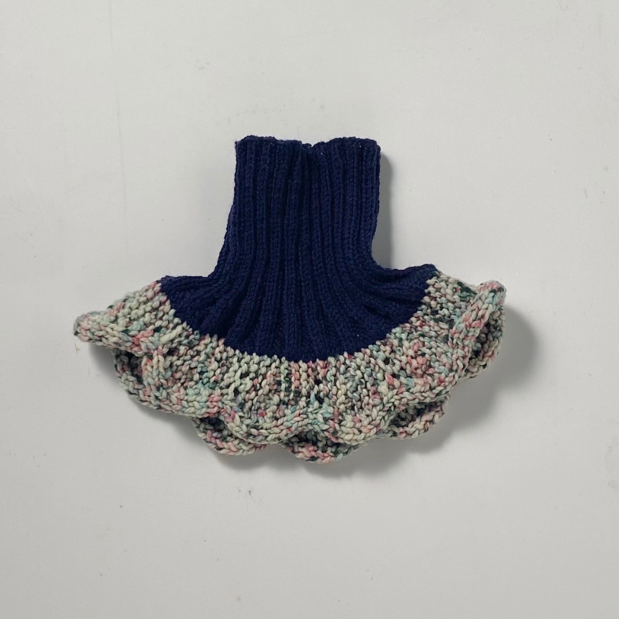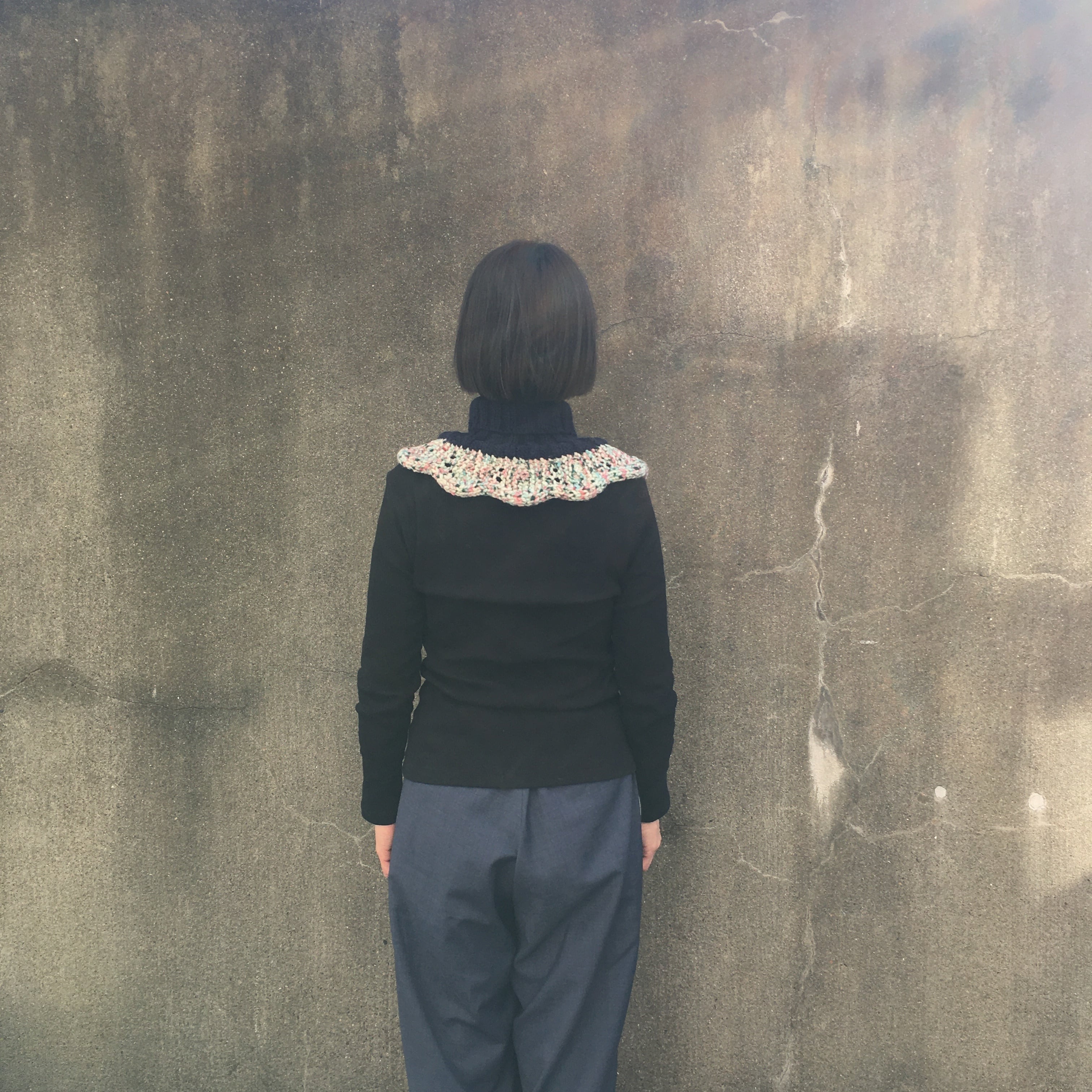 多色糸のウェーブがかわいい小ぶりな首だけセーターです。