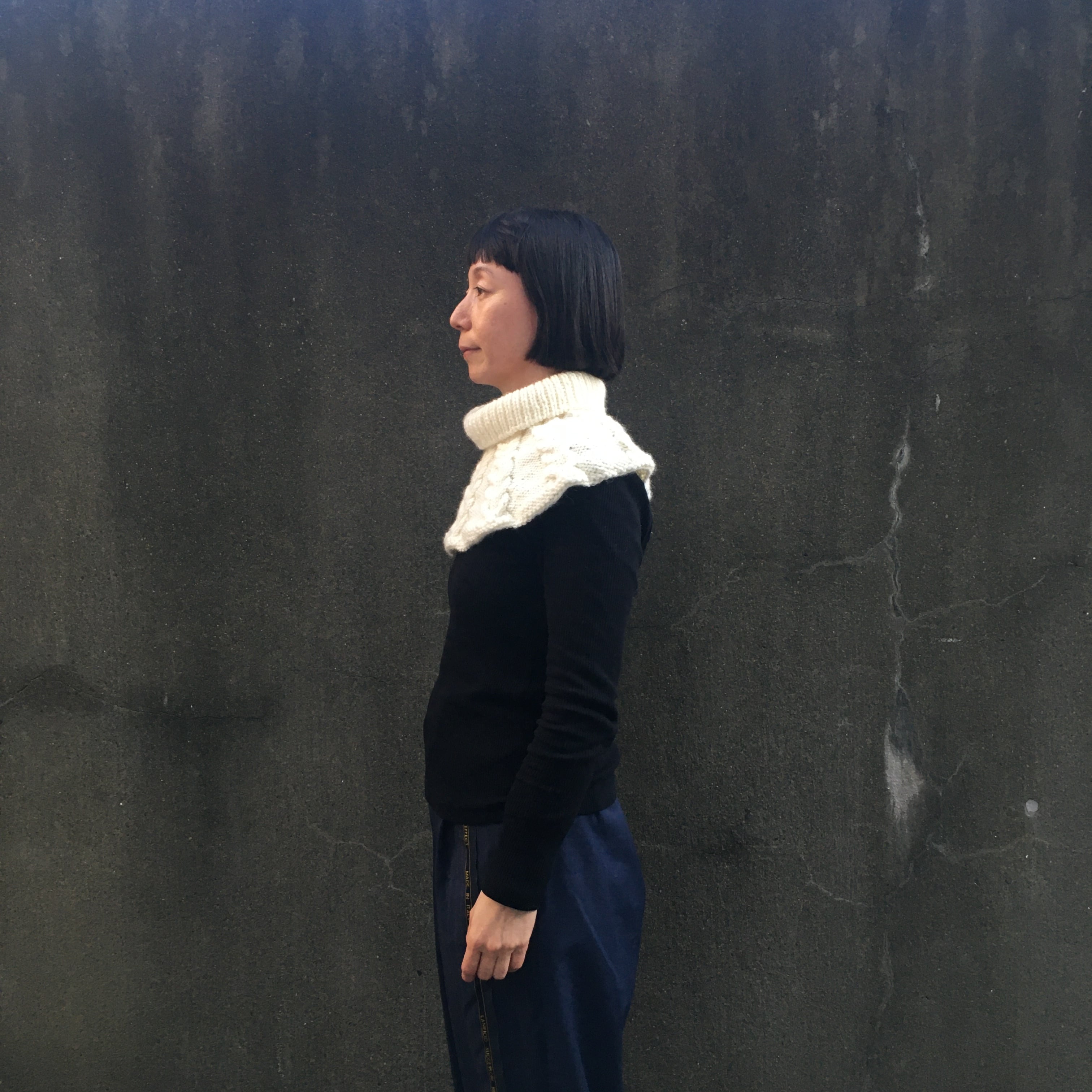 シンプルな縄編みがかわいい、首周りゆったりめのふんわりした首だけセーターです。